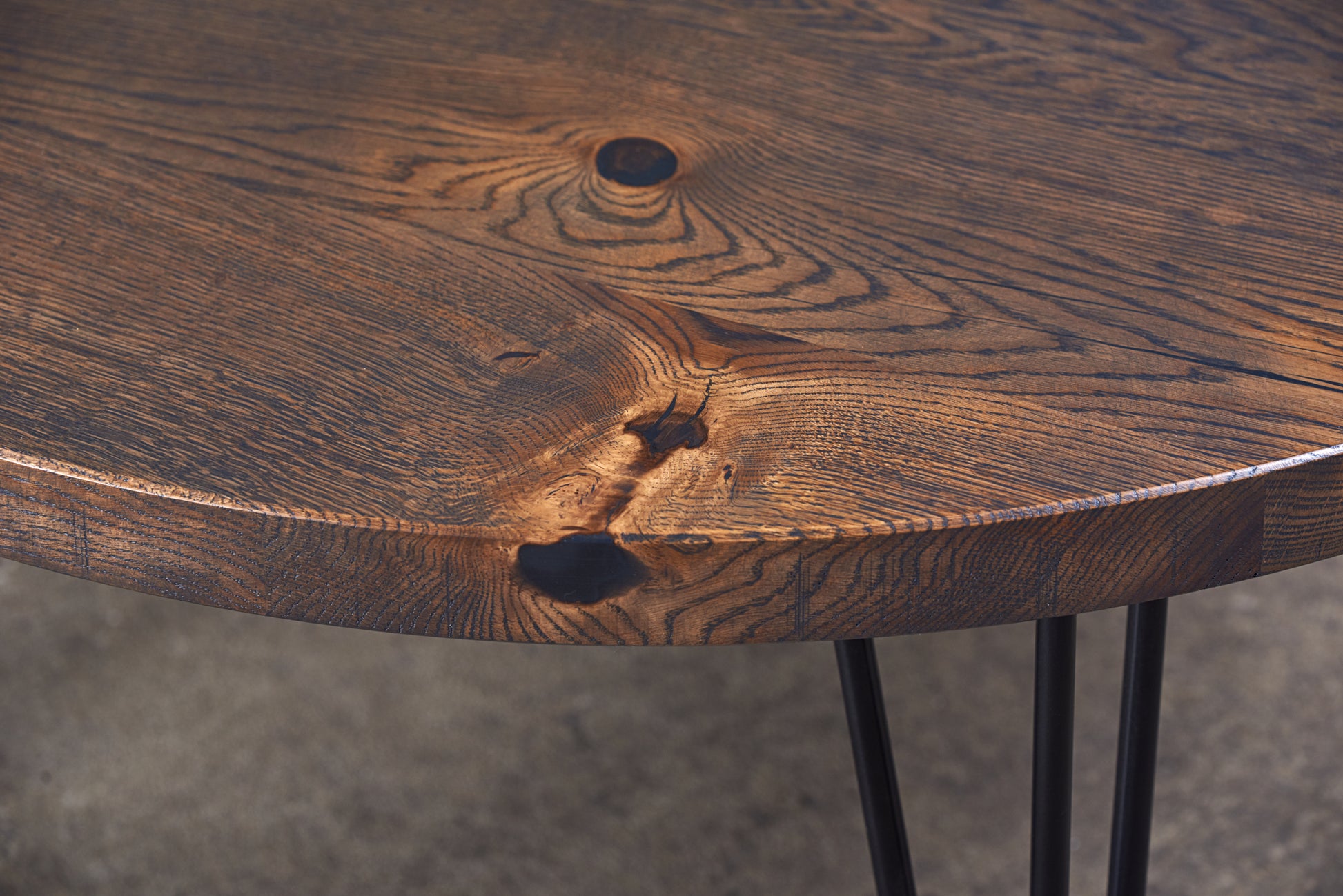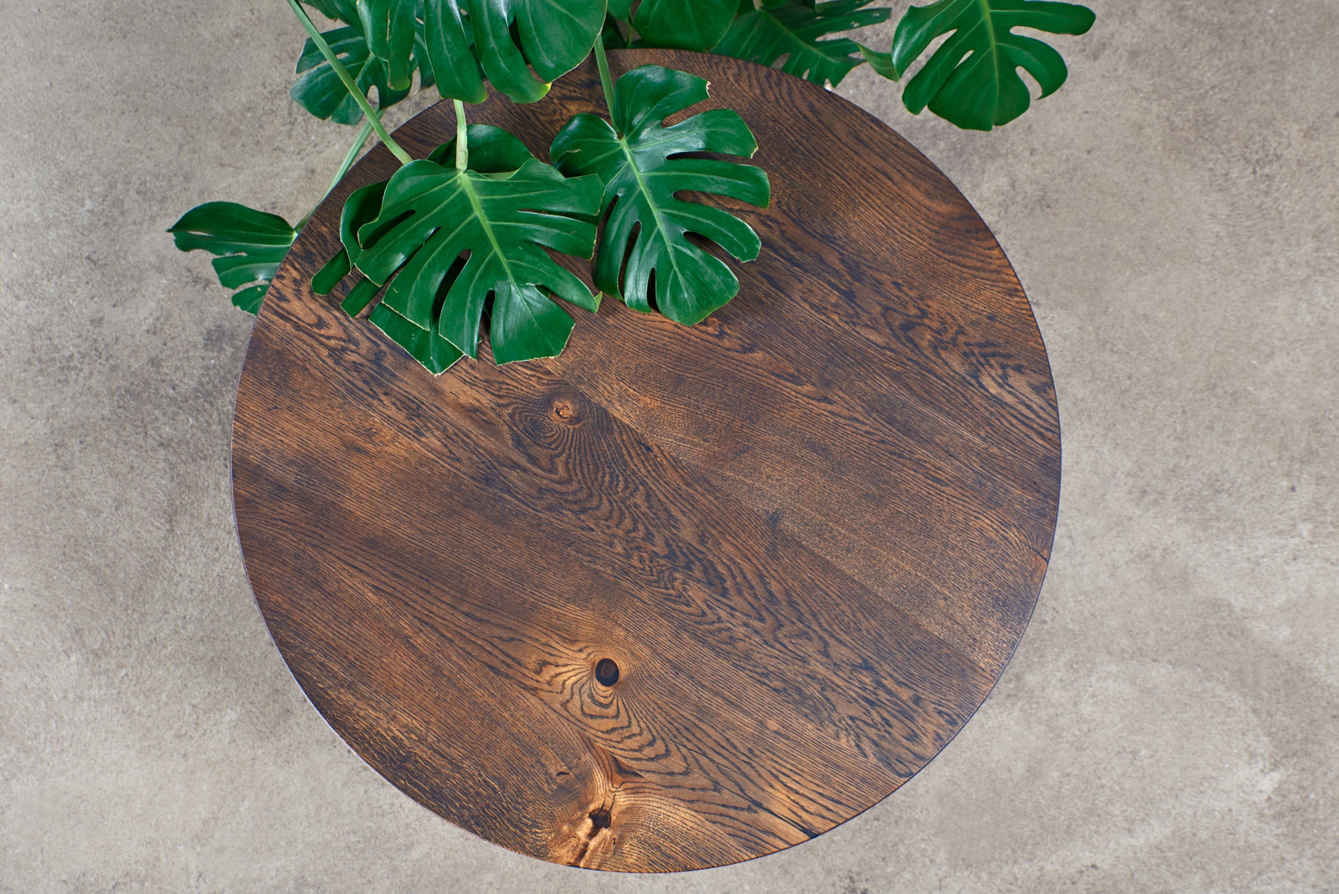 Lengvas, bet tvirtas apvalus kavos staliukas su ąžuolo viršumi, subtiliai užpildytu epoksidu. Plonos metalinės kojelės suteikia lengvumo ir šiuolaikiško žavesio, o medžio raštai išlaiko natūralumo pojūtį. Tinka svetainėje, augalų kompozicijai ar rytiniam kavos puodeliui.