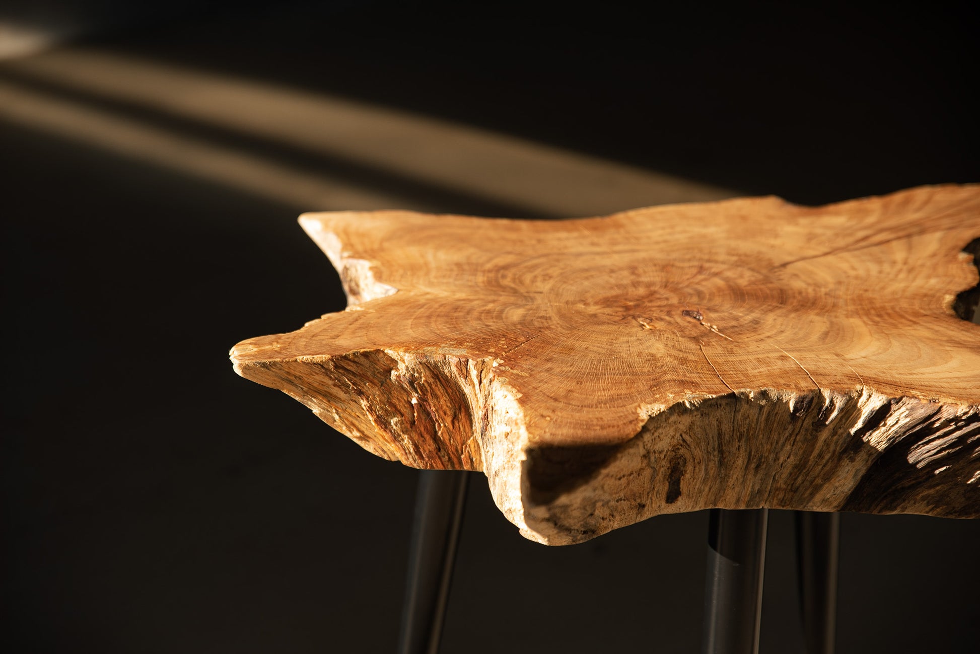 Jo paviršius išskirtinis – pagamintas iš natūralaus ąžuolo masyvo, išlaikant tikrą medienos struktūrą ir formas. Dėl to kiekvienas staliukas yra unikalus, tačiau kartu funkcionalus ir lengvai pritaikomas interjere.