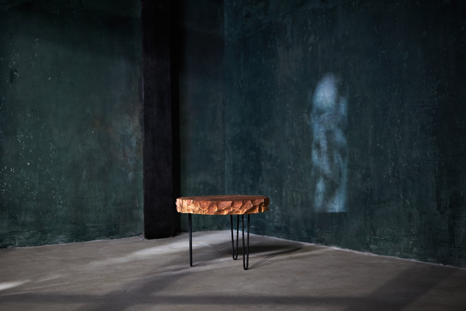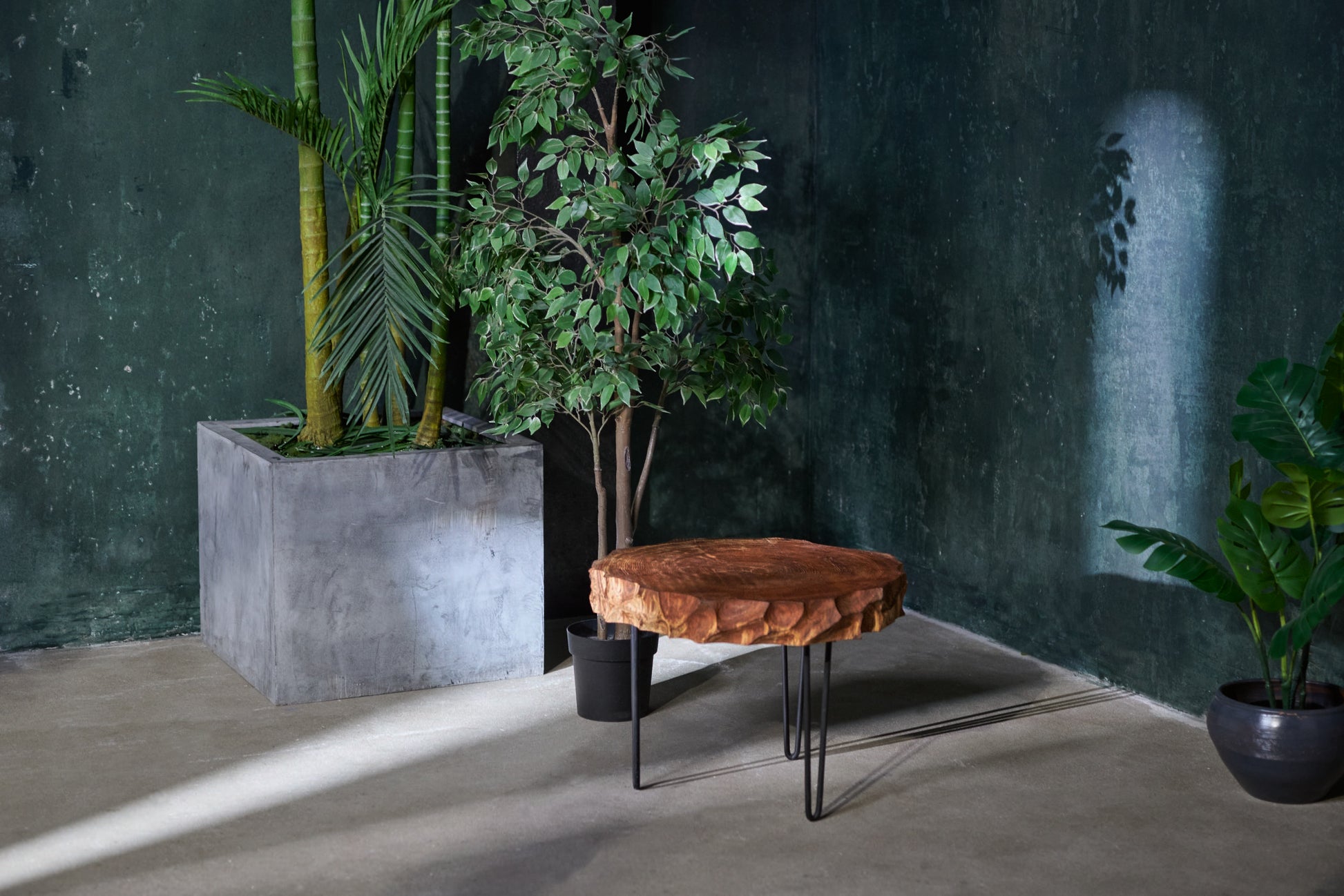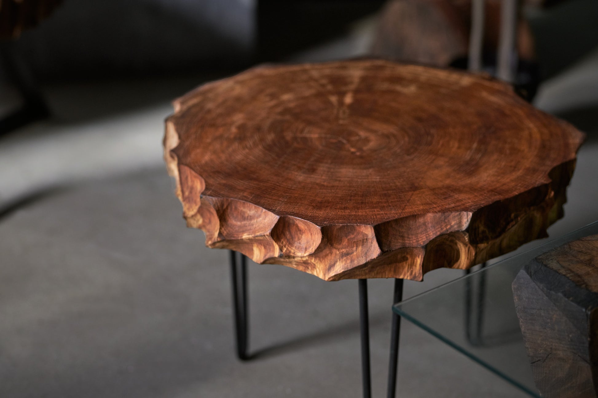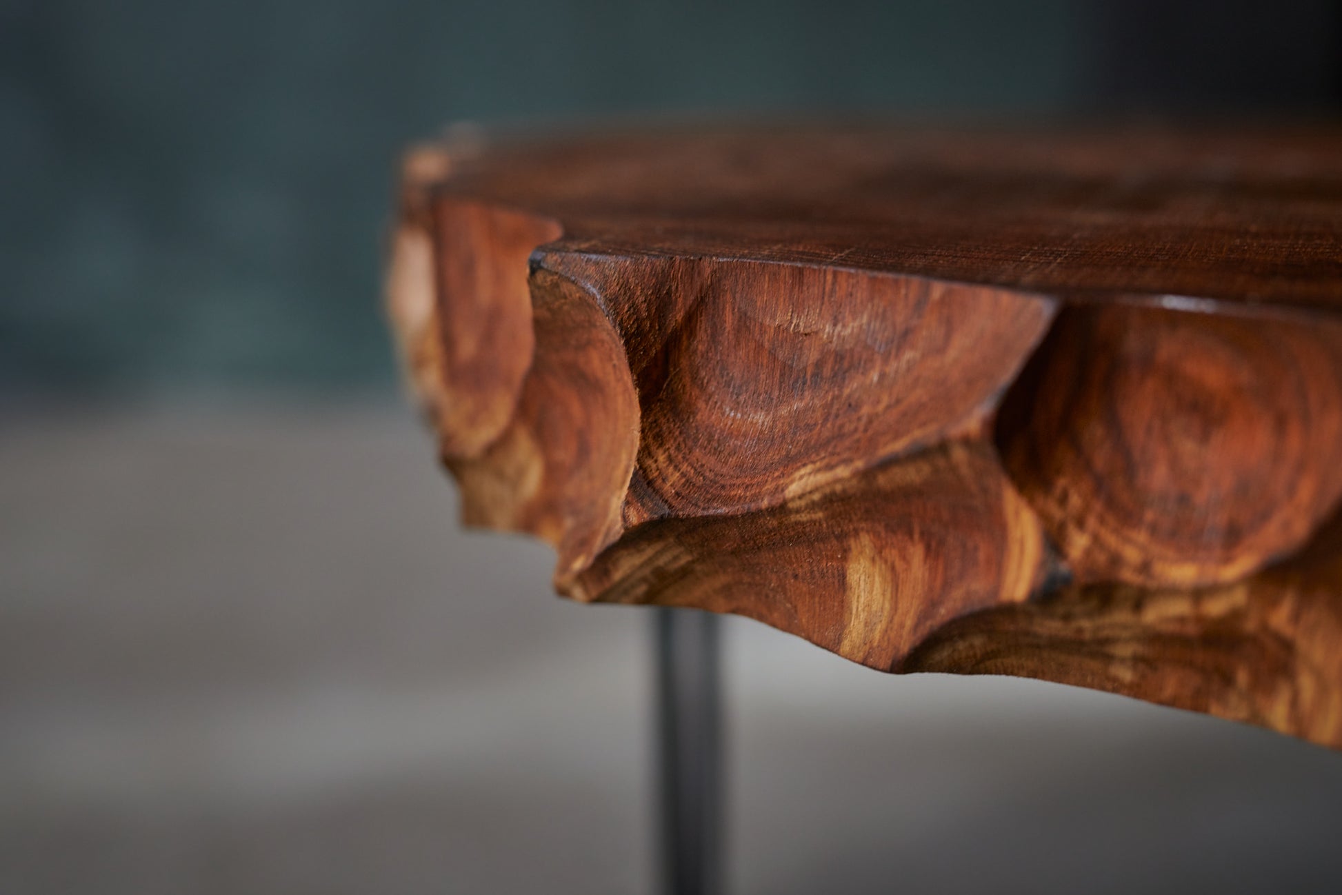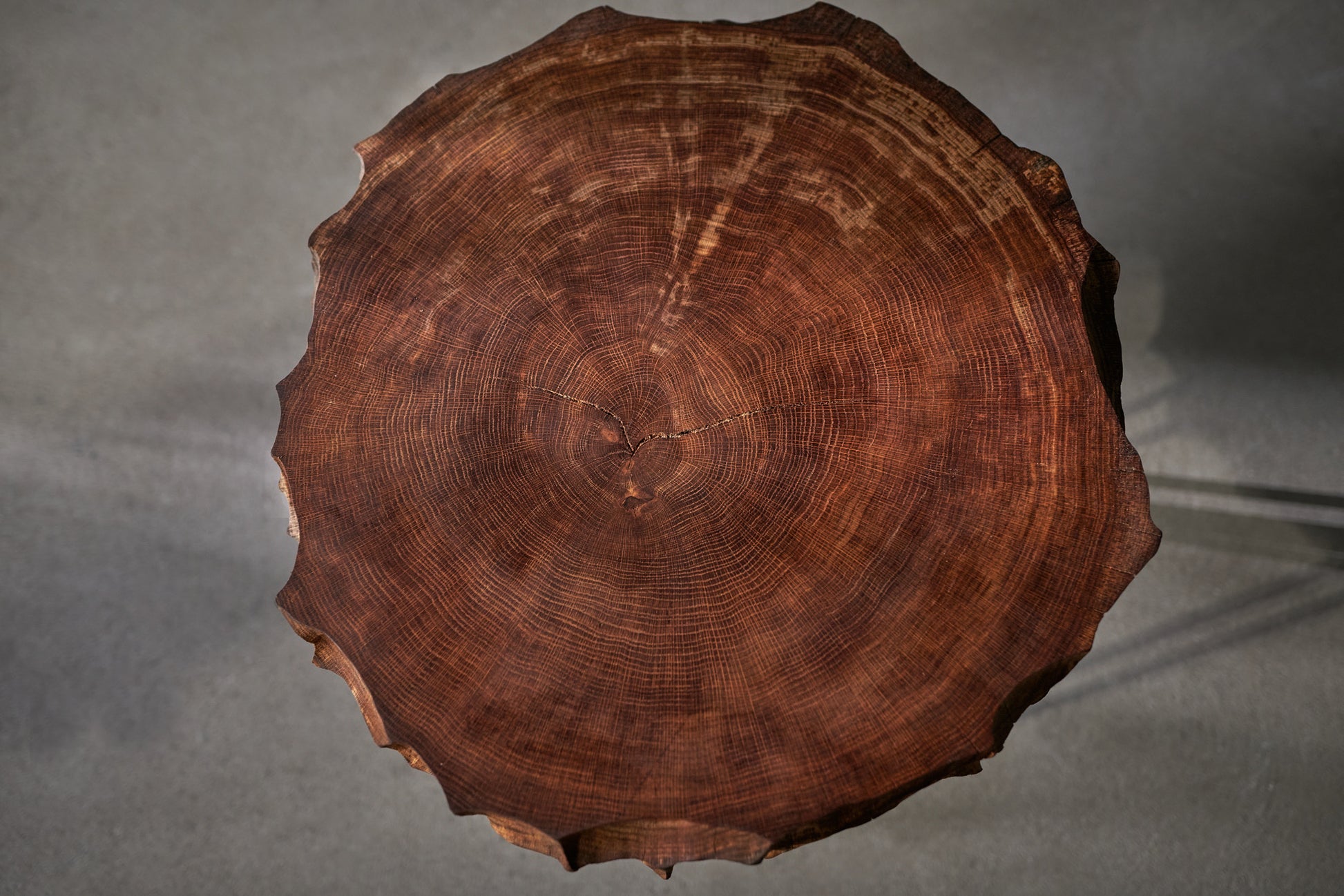 Šis kavos staliukas pagamintas iš vieno natūraliai žuvusio ąžuolo disko. Kiekviena kraštinė – išskobta rankomis, išlaikant autentišką medžio reljefą. Aiškiai matomi metų žiedai liudija ilgametį medžio gyvenimą. Plonos metalinės kojos suteikia lengvumo ir kontrasto solidžiam stalviršiui. Staliukas tinka tiek kaip interjero akcentas, tiek kaip funkcionalus baldas.